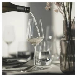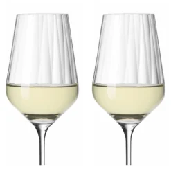 Pure Formsprache ‐ präzise im Detail: Das Weißweinglas‐Set ist mit einer innenliegenden Reliefstruktur aufwendig gearbeitet und lässt ein Wechselspiel von Licht und Schatten entstehen.
