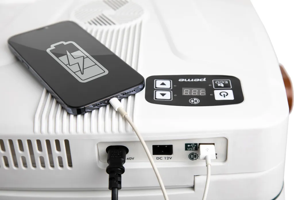 Die thermoelektrische Kühlbox ist sehr energieeffizient. Durch den Einsatz modernster, elektronisch geregelter Technik und höchst effektiver Isolierung konnten diese Werte problemlos erreicht werden. Der USB-Anschluss löst das Problem mit dem Aufladen von Handys im Auto, darüber hinaus gibt es die Versorgungsmöglichkeit vom Zigarettenanzünder oder von normalen Steckdosen. Ein Outdoor-Abenteuer ohne ein kühles Getränk und ein paar Leckereien? Kommt nicht in Frage!