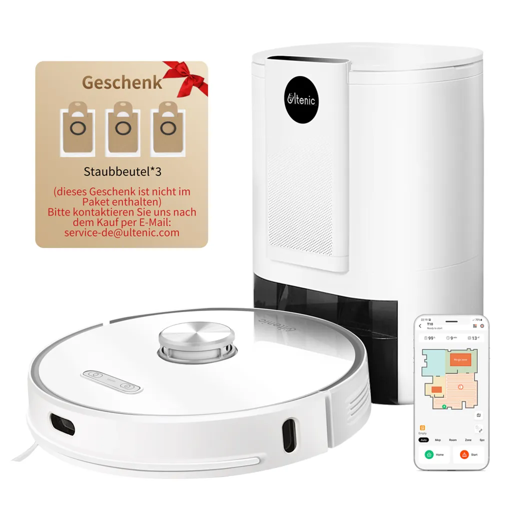 Intelligente Reinigung:Der Saugroboter mit Absaugstation unterstützt intelligente Lasernavigation und kann 360-Grad-Rundum-Scans durchführen.Mit der mehrstöckige Kartierung-Technologie kann der T10 Saugroboter mehr als eine Karte in der App speichern.