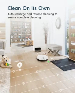 a specific area to clean. Thanks to the compatibility with Amazon Alexa and Google Assistant, you can even start cleaning by voice command.